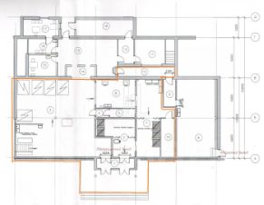 Общая площадь 700м2: цокольный этаж 400м2, первый этаж - 300м2