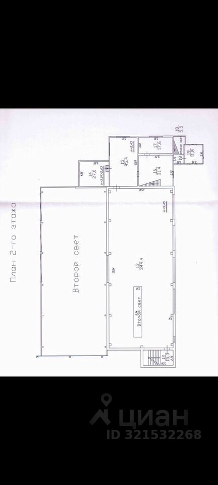 Помещение находится на втором этаже здания и занимает весь этаж.