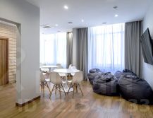 - Большие окна в пол, светлое помещение;
