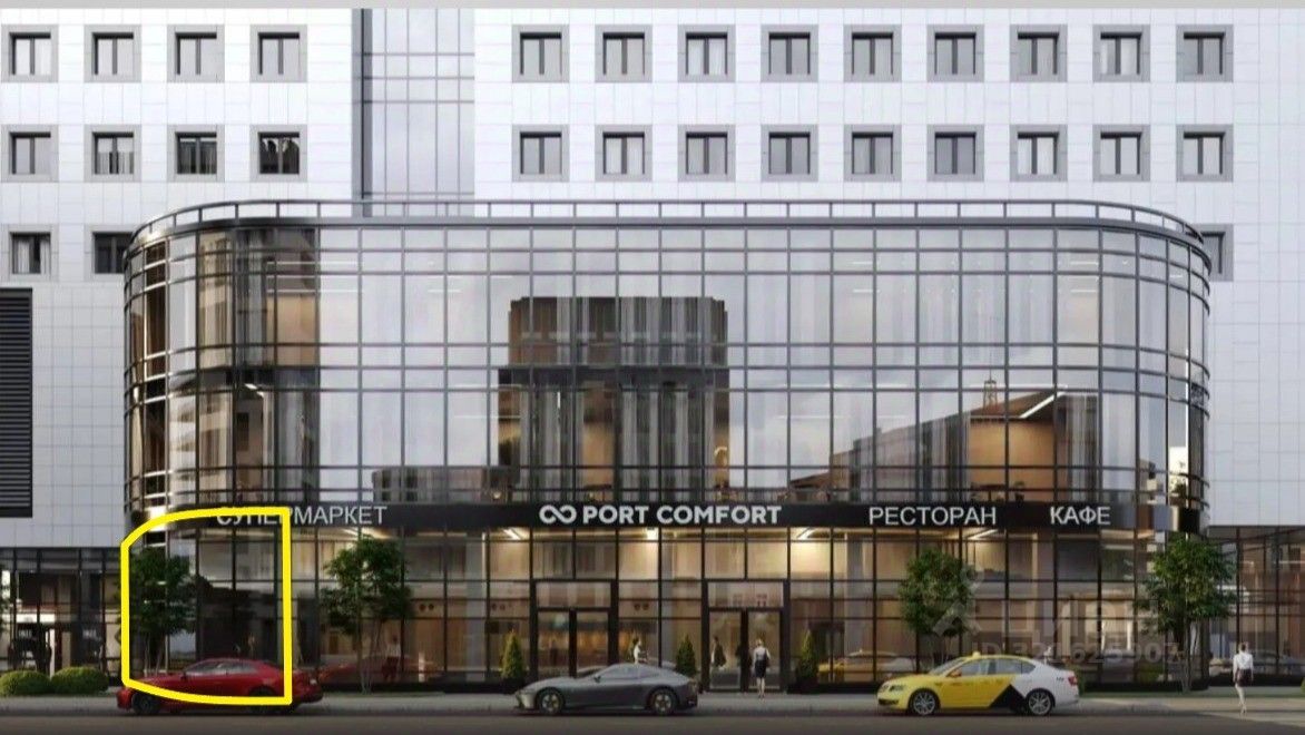 Apендa витpиннoго помещения c панoрaмным оcтеклением и высoкими пoтoлкaми в нoвoм апарт-отeле.