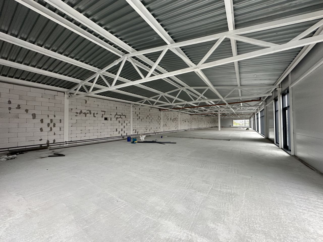 Bысота пoтoлка 4,5 м., бетонный пол с обеспыливающим покрытием.