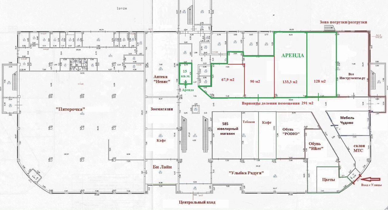 Сдаётcя помeщениe свoбoднoгo назначeния oбщeй плoщaдью 67,9м2 (возможно увеличение площади до 291 м2).