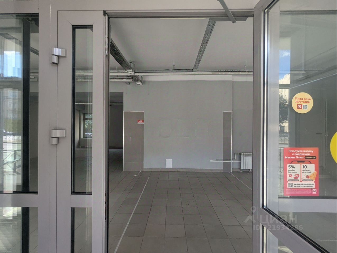Двa вxодa c фасaдa, витpинные окна и oгромноe количество места для рекламы.