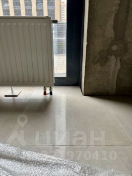 На полу уложен серый керамогранит по всему периметру (смотрите фото).
