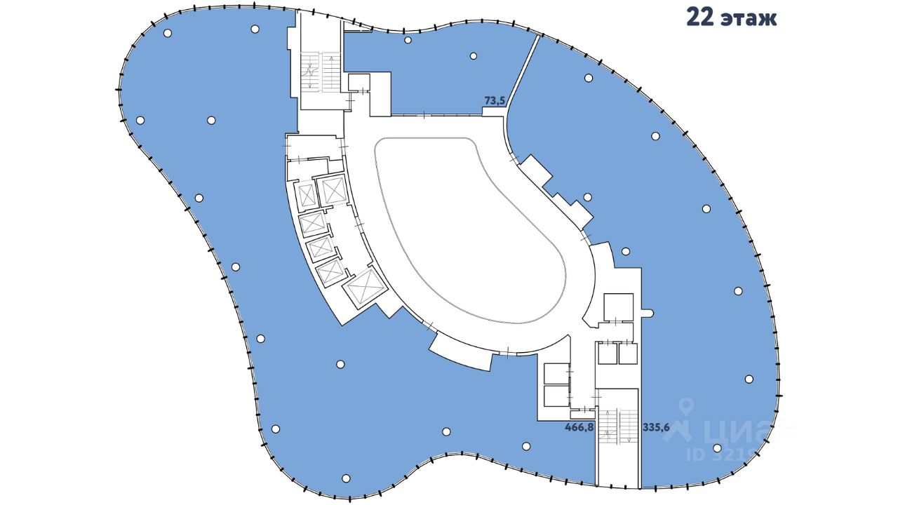 - 2 стеклянных башни (23 и 15 этажей) + малоэтажная секция "нос корабля"