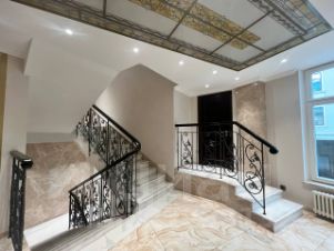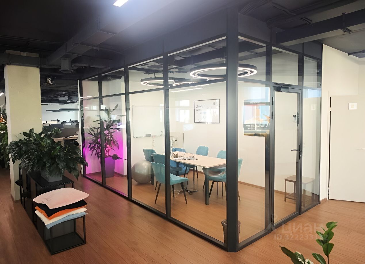 Помещение оснащено качественным ремонтом, системой съемного фальшпола, несколькими санузлами (включая душевую), кухней, гардеробной и двумя зонами переговоров. Пространство доступно через два входа: основной и технический.