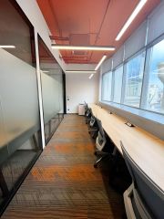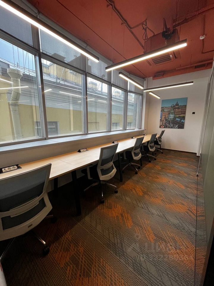 - Полное мебельное оснащение - рабочие столы с электро-подключением и СКС, эргономичные рабочие кресла,