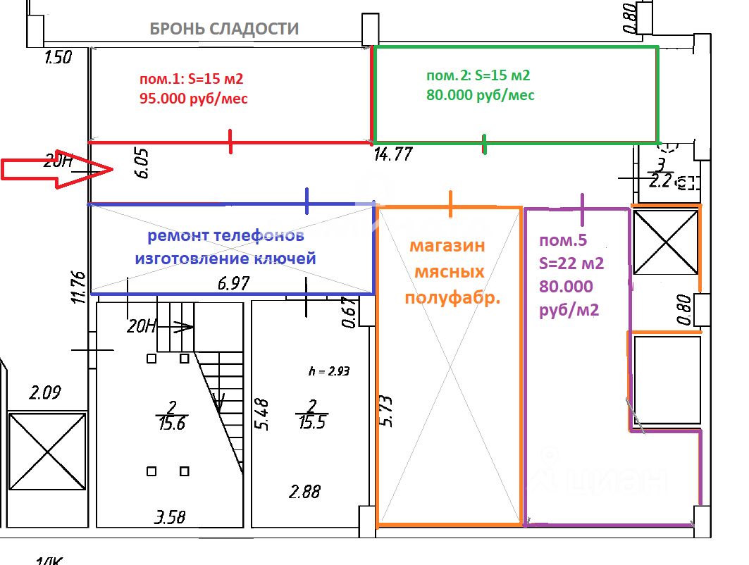 В аренду напрямую от собственника предлагается коммерческое помещение площадью 15 м2 (красный или зеленый контуры на плане) в ТЦ, расположенном в обжитом очень густонаселенном микрорайоне Чистое небо, в зоне супер-активного пешеходного трафика. В ТЦ давно работают: Магазин Перекрёсток, Улыбка радуги, Аптека, Petshop, ОЗОН, Яндекс, детский магазин ВотОнЯ. Помещение расположено на выходе с касс магазина Перекрёсток таким образом, что каждый покупатель Перекрёстка смотрит и идет прямо в его сторону. Помещение расположено в цокольном этаже между магазинами орехов и зоо-товаров, имеет вход из красивой торговой галереи. У Ваших покупателей нет шансов пройти мимо Вас. Планировка помещения открытая, внутри нет колонн и стен. В помещении выполнен ремонт: пол плитка, потолок грильято, светильники, стены поштукатурены и покрашены, высота потолков 3,2м, электричество 10 кВт с возможностью увеличения. Помещение будет свободно к 15 февраля 2026 г. ОЧЕНЬ ПОДХОДИТ ПОД: конфеты, сладости, игры, рыба, икра, спортивное питание. НЕ СДАЕМ ПОД: табак, цветы, орехи, ателье. По остальным видам бизнеса, пожалуйста, уточняйте. Звоните, буду рада ответить на Ваши вопросы.