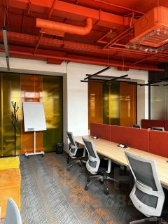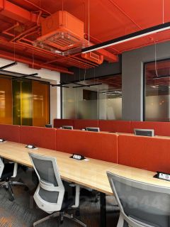 - Полное мебельное оснащение - рабочие столы с электро-подключением и СКС, эргономичные рабочие кресла,