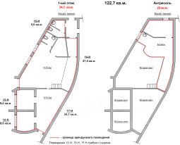 Отдельно стоящее здание, общая площадь 122,7 кв. м. (из них 42,3 кв. м. требует отделки, 40 кв. м. зал, 28 кв. м. антресоль).