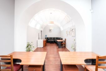 В помещение два входа: с Английской набережной и с Галерной улицы.