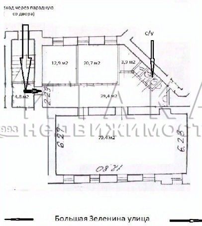 Вход Только через парадную ( вход со двора)(обратите на это внимание),все помещения с окнами.