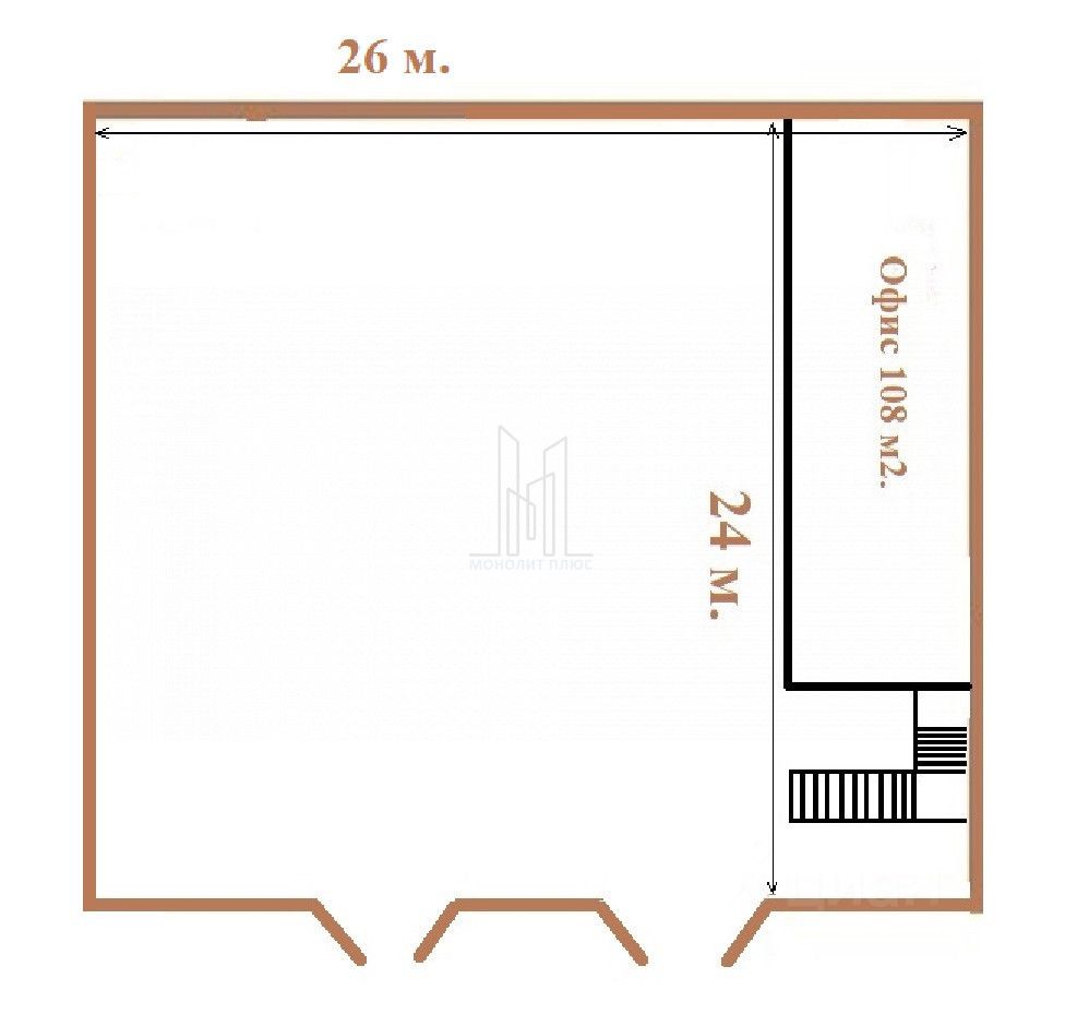 Размер (пятно) склада 624 м2 (24м. х 26м.)