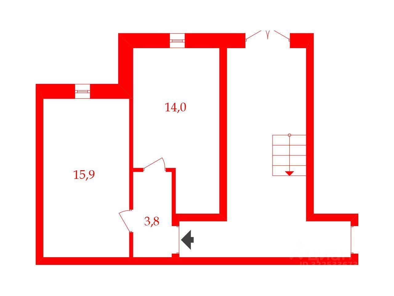 Цоколь 34 метра в жилом доме, вход из подъезда.
