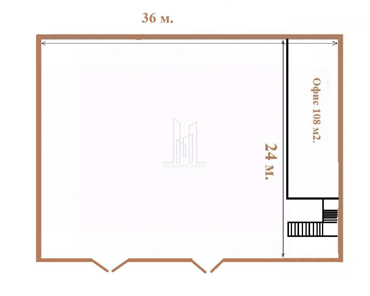 Размер (пятно) склада 864 м2 (24м. х 36м.)