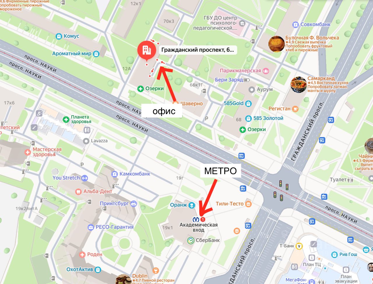Отличная локация — 2 минуты пешком до метро Академическая. Рядом проспект Науки, активный пешеходный и автомобильный трафик.