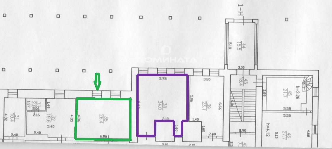 В аренду предлагается небольшой склад площадью 26,4 м2 (зеленый контур на плане), с небольшим загрузочным окном со стороны внутреннего двора ДК Выборгский, расположенное в цокольном этаже основного здания театра в пешей доступности от двух станций метро: пл.Ленина и Выборгская. Внутреннее состояние нормальное, есть отопление. Склад не оборудован мокрой точкой и отдельным с/у, они общие, находятся на первом этаже. Помещение просторное, высота потолков 2.4 м. (фиолетовый контур). Общий вход с торцевой части здания, ухоженная лестница, во внутреннем дворе есть достаточно мест для парковки а/м (стоянка платная). Помещение подойдет для скромного офиса или склада. Важно: никакие виды производства не рассматриваются! Дополнительно к аренде оплачивается отопление (около 1200руб.). Безопасность: охрана, видеонаблюдение, режим работы с 7 до 23 ч. (возможно расширить по согласованию). С удовольствием отвечу на Ваши вопросы и организую просмотр.