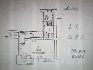 Большой и светлый зал на входе 55 м², потолки 3,2 м.