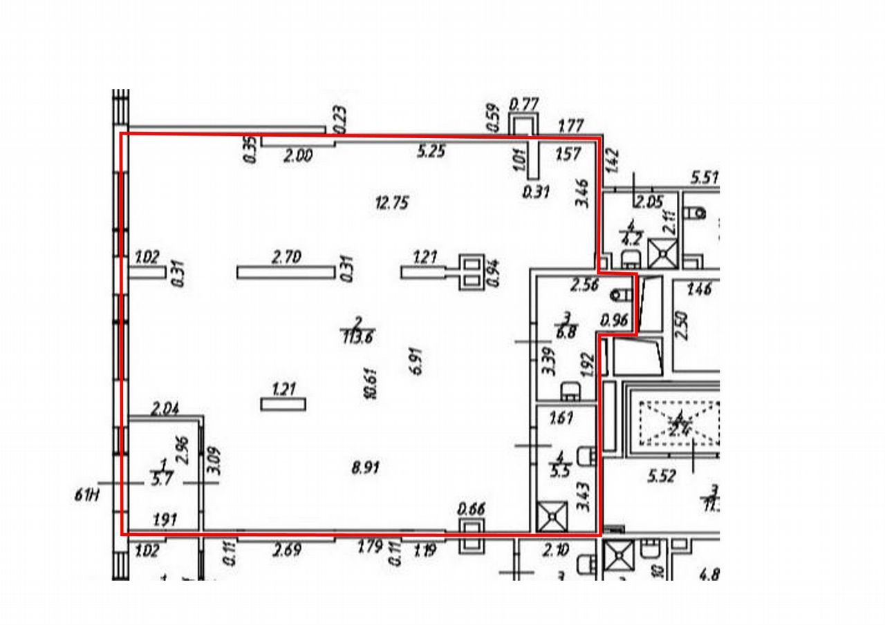 Высота потолка 3,8 метров, 3 витринных окна, вода, канализация, отопление центральные, электричество 25 кВт (возможно увеличение), первый этаж.