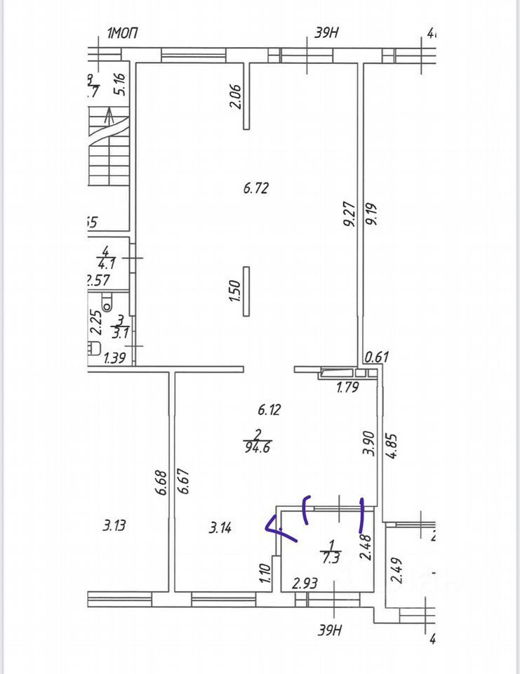 Высота потолков 3,4 м.