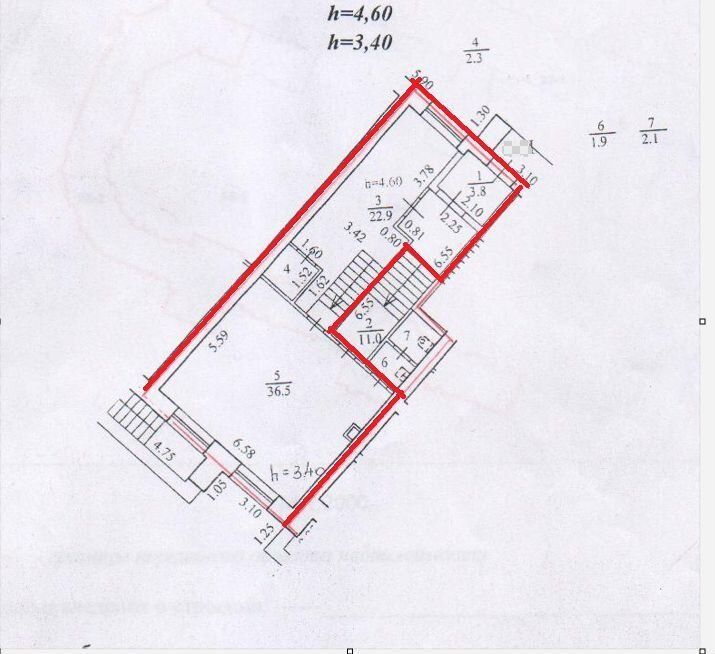Высота потолков от 4,6м до 2,5 в подвале.