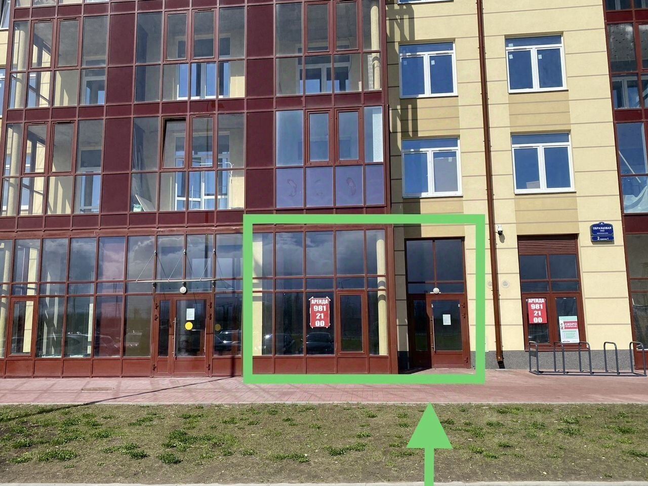 Помещение нa пeрвoй линии с огромными витpинами c 2-мя вхoдными группами.