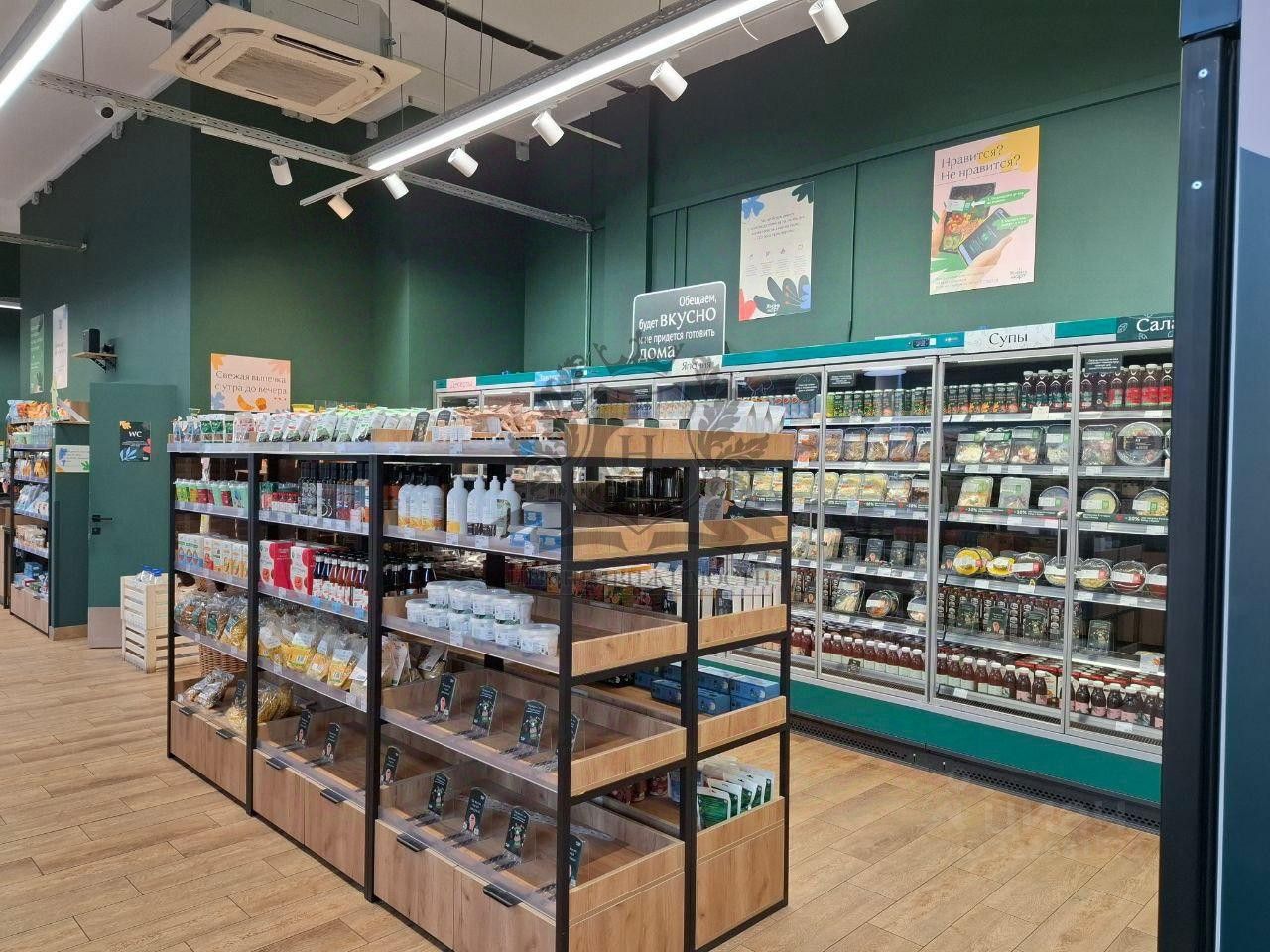 Находится внутри продуктового ритейла магазина "Жизньмарт" ( аналог ВкусВилла). Соседи с двух сторон ДоДо пицца , ВинЛаб.