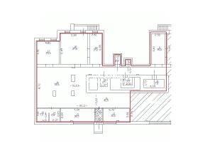 Есть возможность разделить помещение на 2 части по 150 - 170 м2 при оборудовании тамбура.