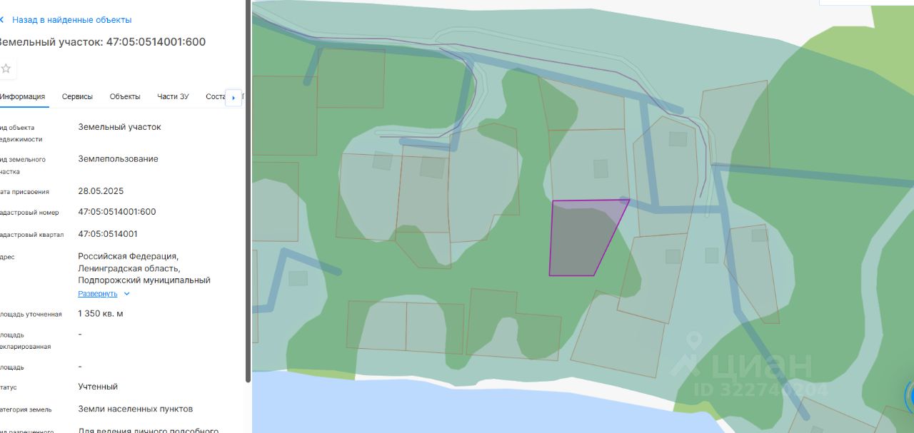 Земельный участок из земель населенных пунктов, с кадастровым номером 47:05:0514001:600, площадью 1350 кв.м. расположенного по адресу: Ленинградская область, Подпорожский муниципальный район, Подпорожское городское поселение, деревня Мятусово, Зелёный тупик, земельный участок 8, с видом разрешенного использования: для ведения личного подсобного хозяйства. Срок аренды 20 лет со дня заключения договора.