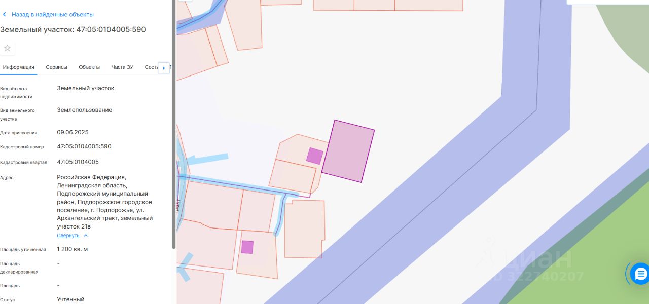 Земельный участок из земель населенных пунктов, с кадастровым номером 47:05:0104005:590, площадью 1200 кв.м. расположенного по адресу: Ленинградская область, Подпорожский муниципальный район, Подпорожское городское поселение, город Подпорожье, ул. Архангельский тракт, земельный участок 21в, с видом разрешенного использования: для индивидуального жилищного строительства. Срок аренды 20 лет со дня заключения договора.
