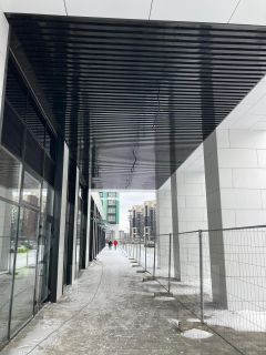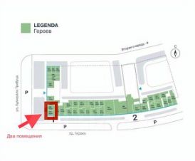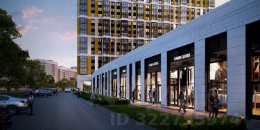Все помещения коммерческого назначения в ЖК расположены на первом этаже вдоль проспекта Героев и по внешнему периметру комплекса — всего 37 помещений в первой очереди строительства. Жилые корпуса немного нависают над линией коммерческого фронта и притягивают пешеходный трафик в любое время года.