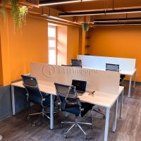Смешанная планировка. Офис полностью оборудован мебелью - смарт столы, офисные кресла, стулья, собственная кухня. шкафы, зона ресепшен, светодиодное освещение.