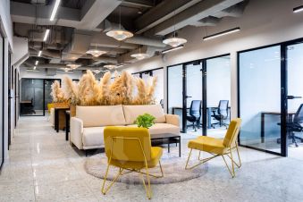 Отдельные рабочие кабинеты рассчитаны на 176 человек, санузлы с душевой, переговорные, конференц зал, лекторий.
