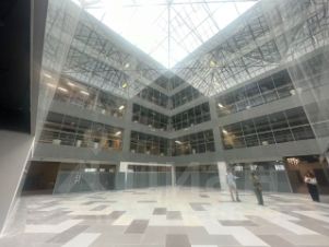 Описание помещения: Комфортабельный офис свободной планировки с отделкой под ключ и панорамным остеклением на улицу.