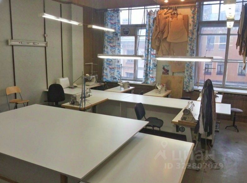 Описание помещения: Большие окна, возможность размещения столов и машинок, манекенов, мест для хранения тканей.