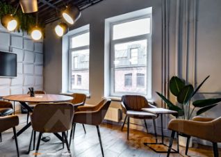 Описание помещения: Презентабельный офис, рассчитанный на 12 человек. Оснащен современной мебелью для комфортной работы - умными столами, удобными креслами, индивидуальными смарт-ключами.