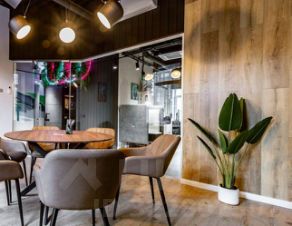 Описание помещения: Презентабельный офис, рассчитанный на 18 человек. Оснащен современной мебелью для комфортной работы - умными столами, удобными креслами, индивидуальными смарт-ключами.