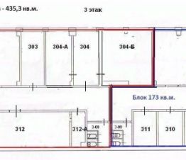 Описание помещения: Офисный блок занимает часть третьего этажа.