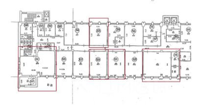 Описание помещения: Несколько соседних кабинетов на этаже. В блоке выполнена стандартная офисная отделка - стены под покраску, потолок подвесной, напольное покрытие - линолеум.