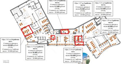 Есть оборудованная кухня, переговорные комнаты, зоны отдыха и ресепшн, гардеробная, санузлы.