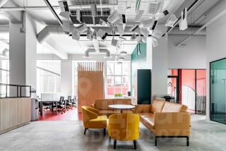 Есть переговорные комнаты, зона ресепшн, оборудованная кухня с зоной приема пищи, санузлы, гардеробная, зона отдыха.