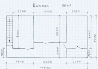 1-й этаж - 59 м2, цокольный этаж - 58 м2.
