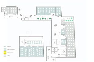 Есть оборудованная кухня, санузлы, переговорные комнаты, зона отдыха и ресепшн.