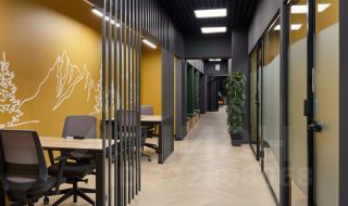 В офисе есть оборудованная кухня, зоны отдыха, ресепшн, переговорные комнаты, гардеробная, санузлы.