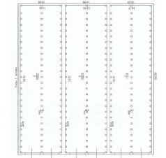 Каждое помещения прямоугольной формы, ширина 14 метров, длина 52 метра, высота 6 метров.