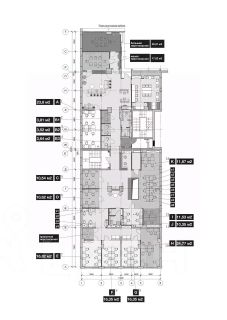 Описание помещения: Офис на 12 человек, полностью мебелирован и укомплектован орг. техникой. На плане F8 и G9.