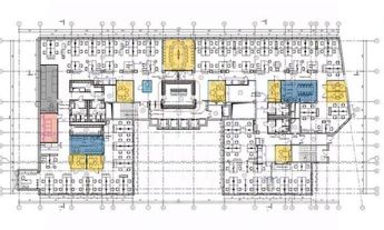 Описание помещения: Этаж целиком. В блоке большая зона open space с выделенными зонами для рабочих мест, установлены тканевые перегородки. Рабочие места оснащены современными системами освещения. На этаже расположены переговорные комнаты. Имеются полноценные кухни, зоны ожидания и кофе-поинты.