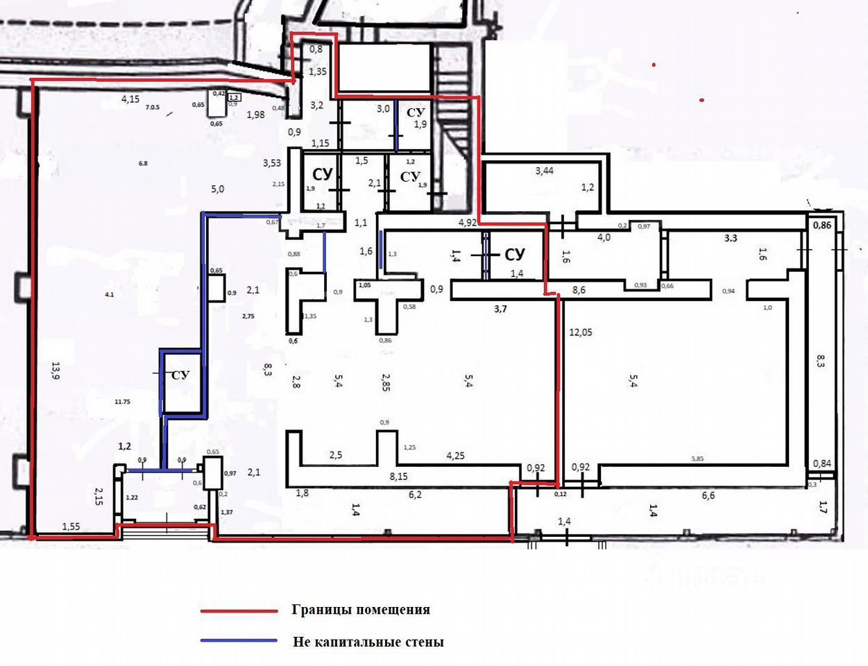 Стена отделяющая пекарю от остального помещения вместе с СУ не капитальные. (не капитальные стены выделены синим цветом на планировке)