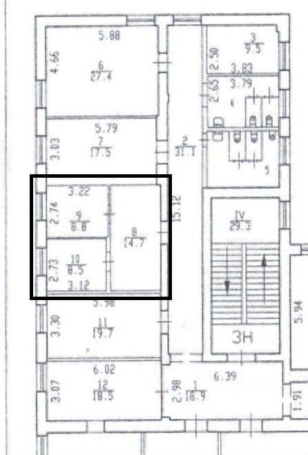 Офис состоит из трех помещений два кабинета 8,8 мкв и 8,5 мкв, один проходной 14.7мкв.
