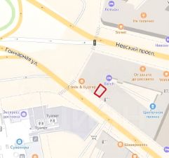 Площадь 43.5 м2, витрины на Гончарную, отлично просматриваются с Невского, вход через пекарню.